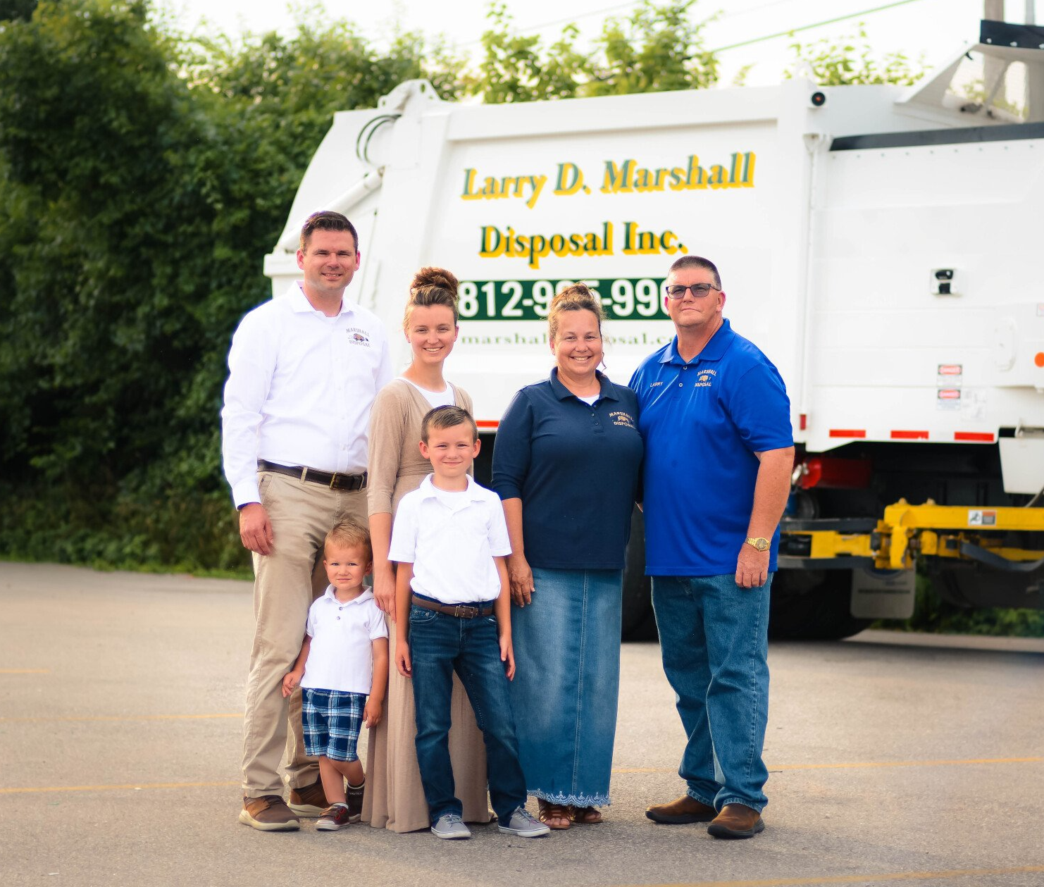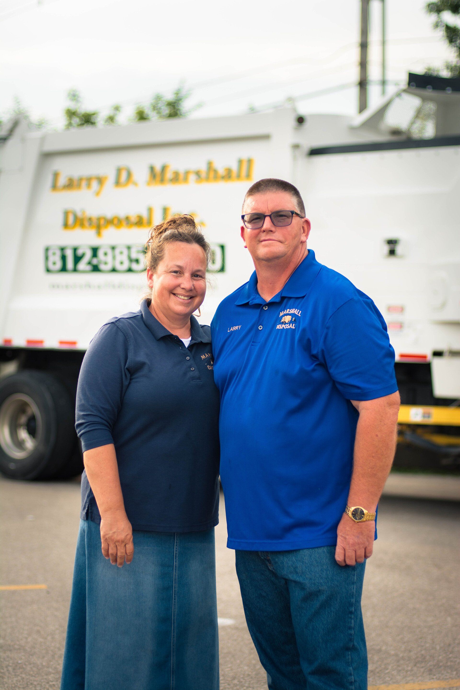 Larry and Marilyn Marshall started Larry D Marshall Disposal, Inc. in July of 2000; picking up the first bag of garbage in Marilyn’s mini-van. After the argument about using the mini-van, Larry started using his pick-up truck, while Marilyn ran the business operations from their home in New Harmony. It did not take long for the Marshalls to realize the need for an actual garbage truck.